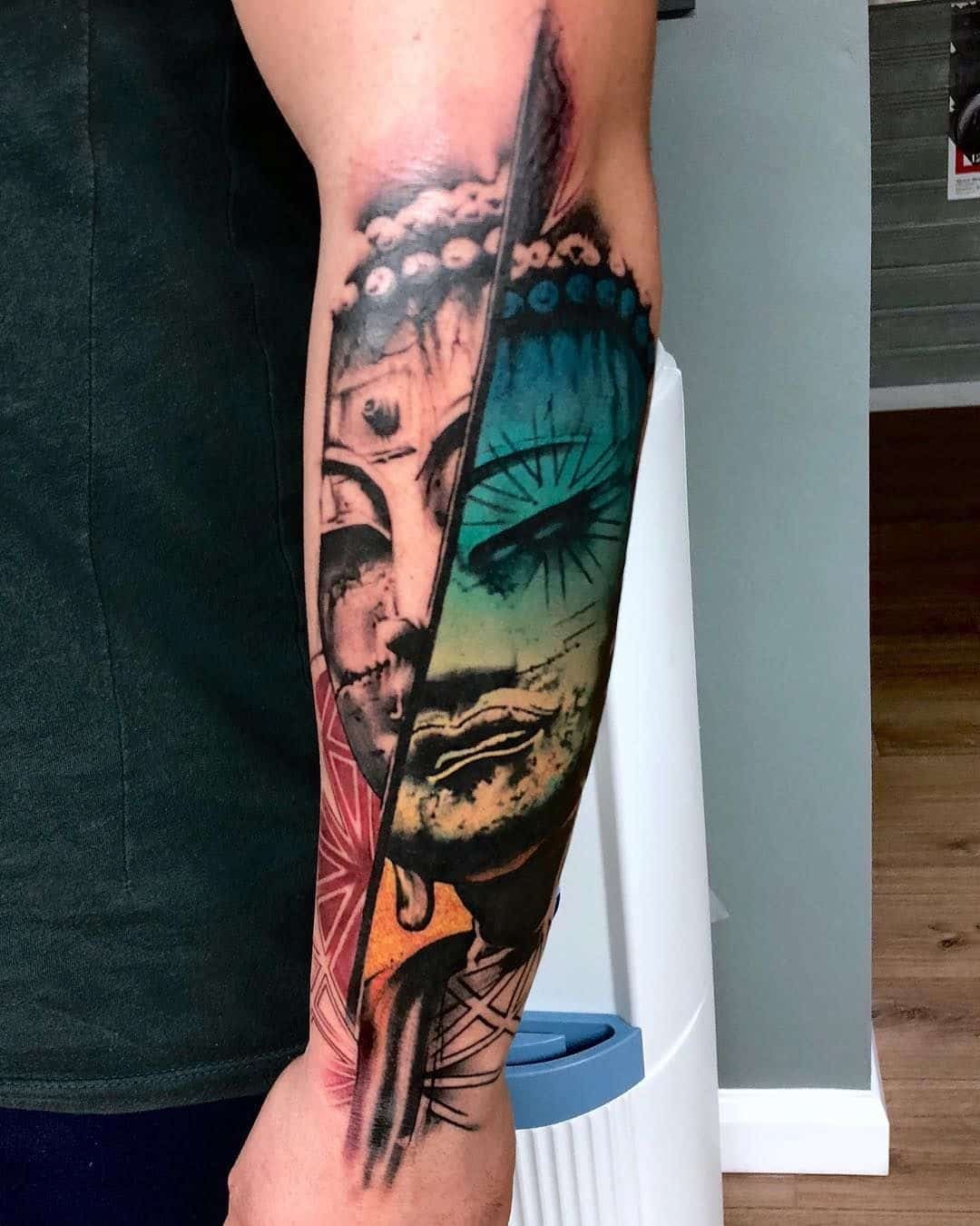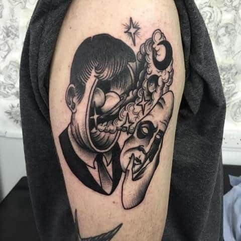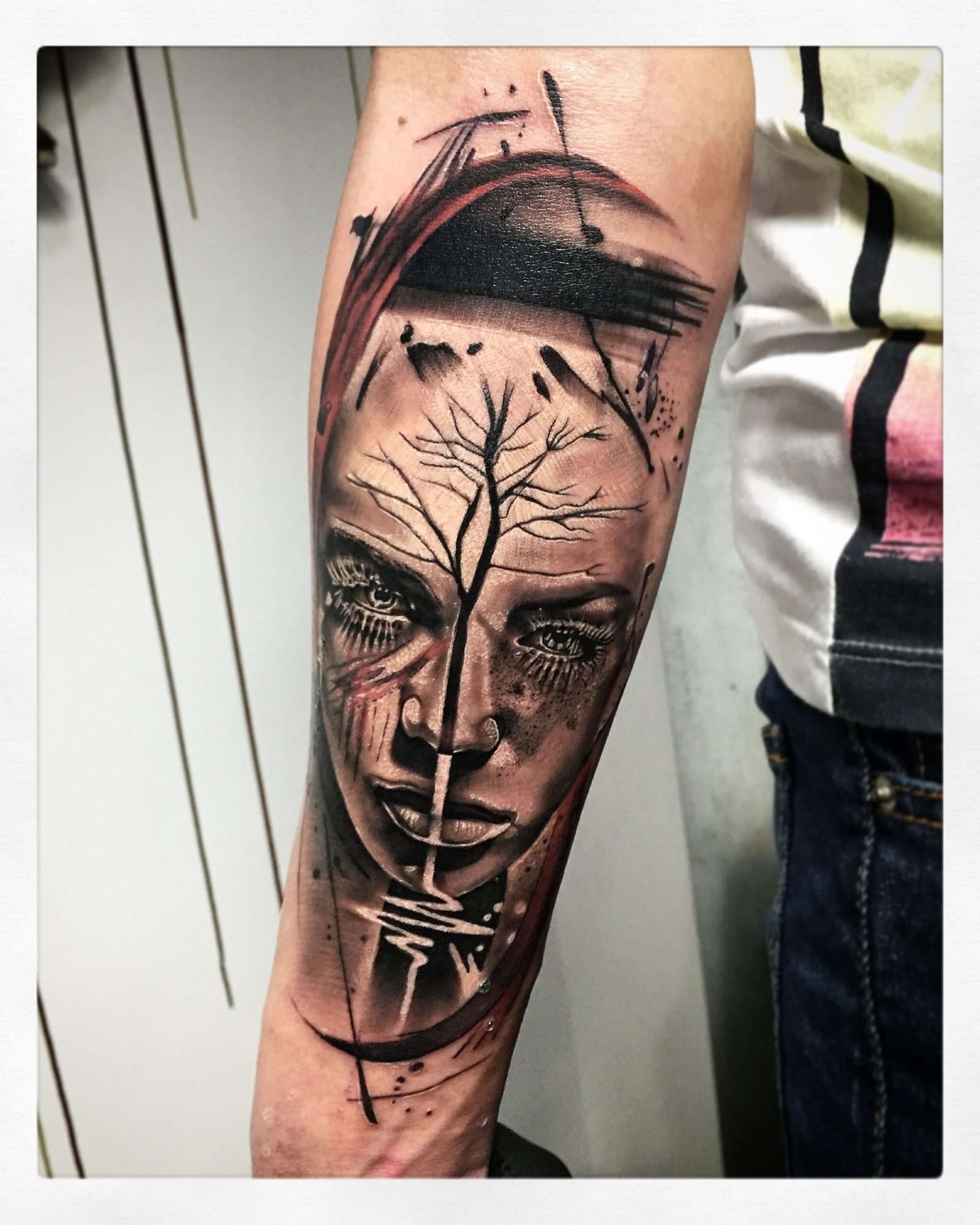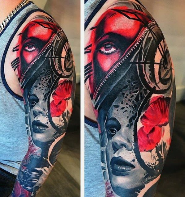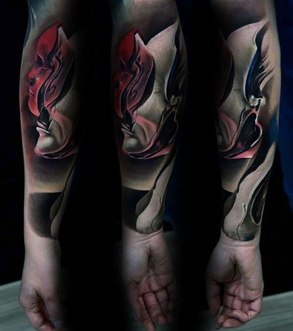 Arm Portrait Surrealism Tattoo Ideas On Guys