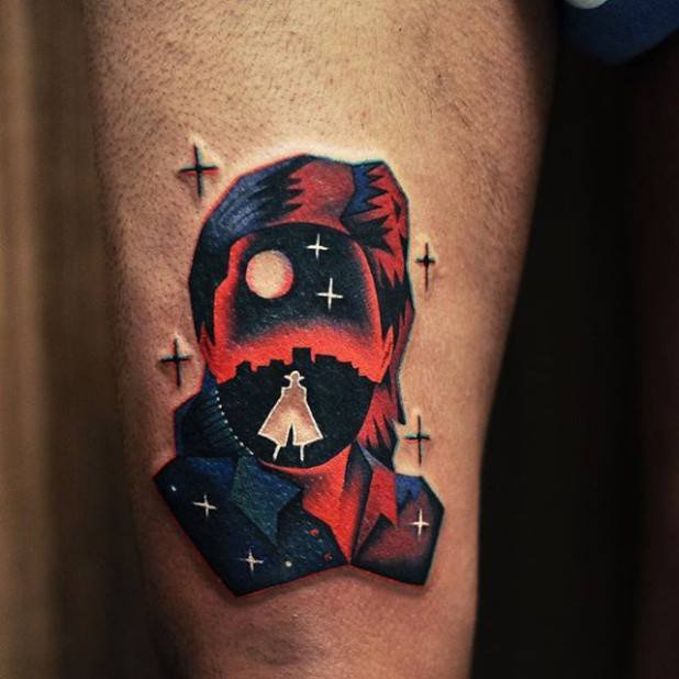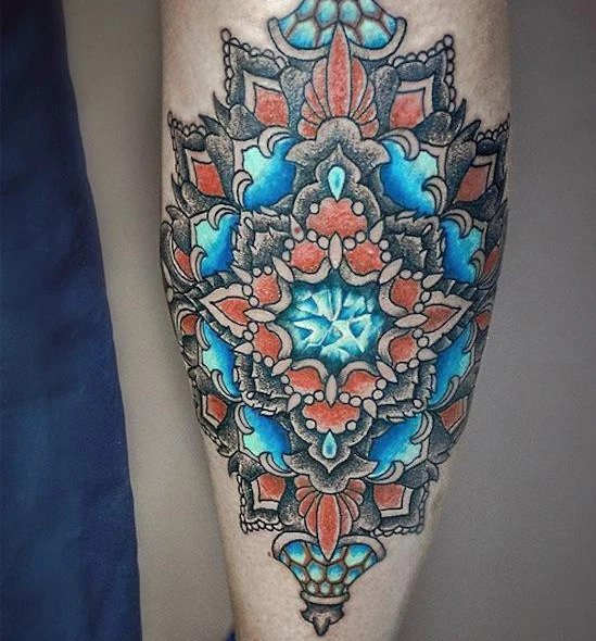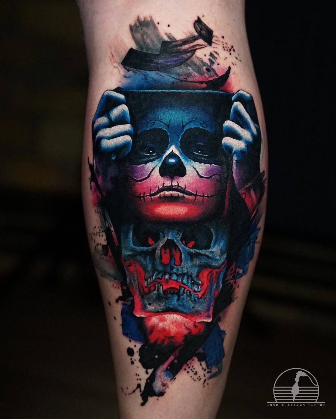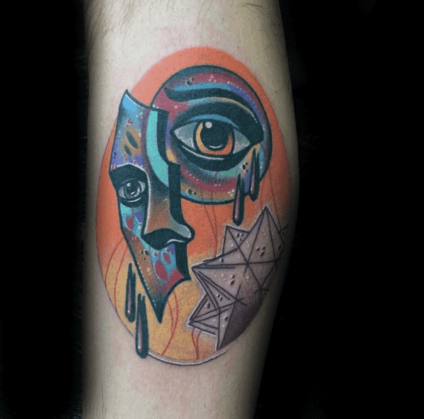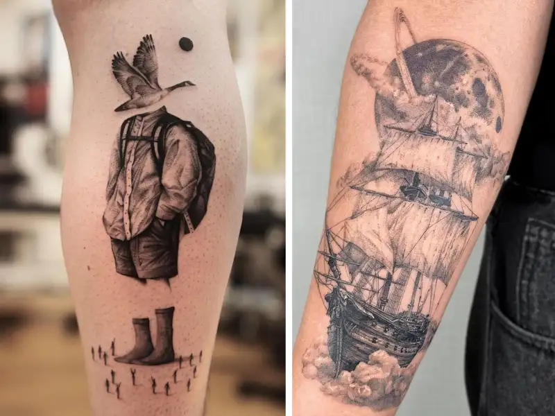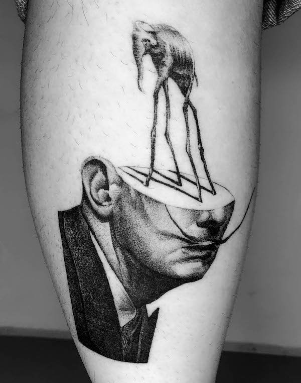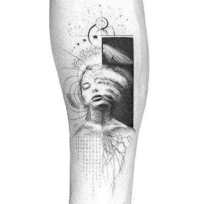 Surrealism Guys Leg Calf 3D Optical Illusion Tattoo