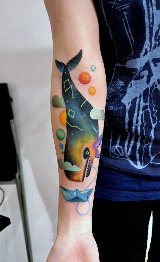 Surrealism Whale Mens Tattoo Ideas On Rib Cage Side Of Body