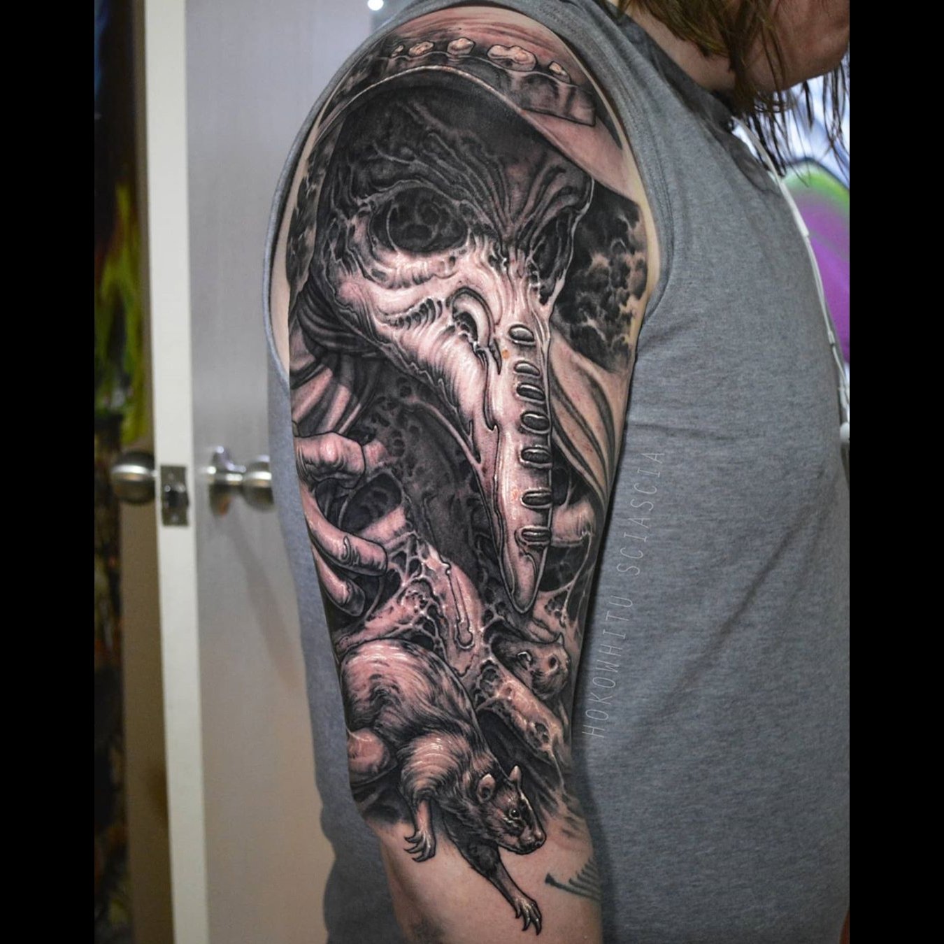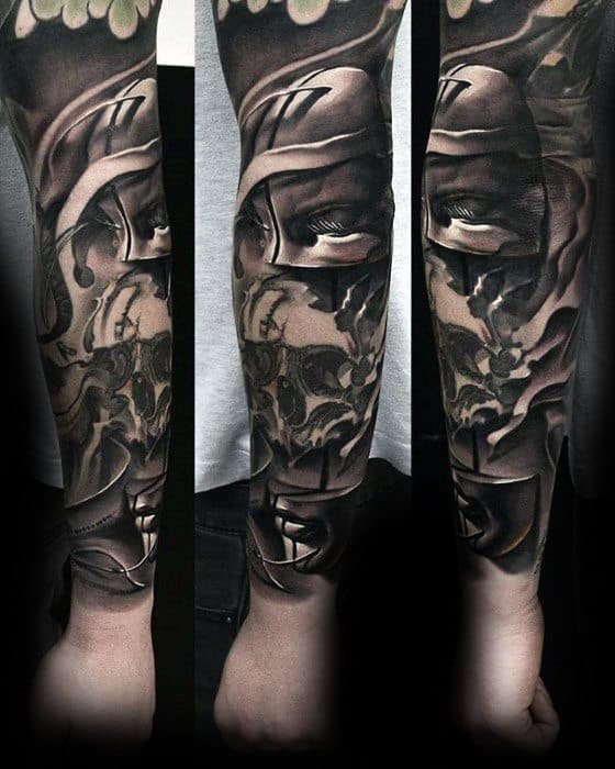 Full Arm Sleeve 3D Skull Surrealism Tattoos Men