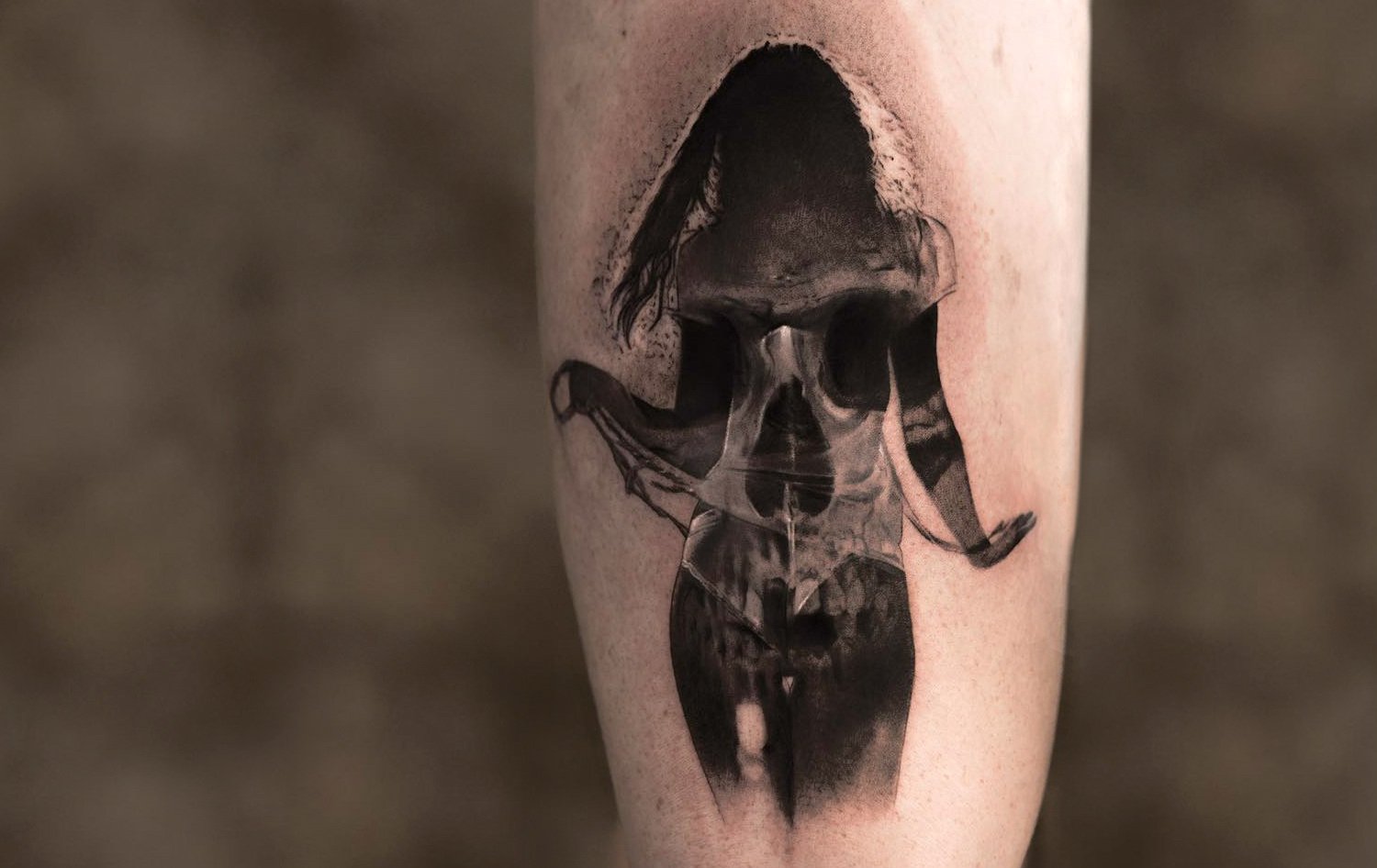 Awesome Forearm Skull Surrealism Tattoos For Men