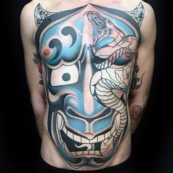 Mens Surrealism Japanese Snake Demon Chest Tattoo