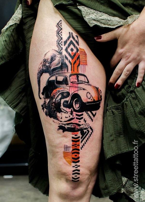 Leg Sleeve Sharp Surrealism Male Tattoo Ideas